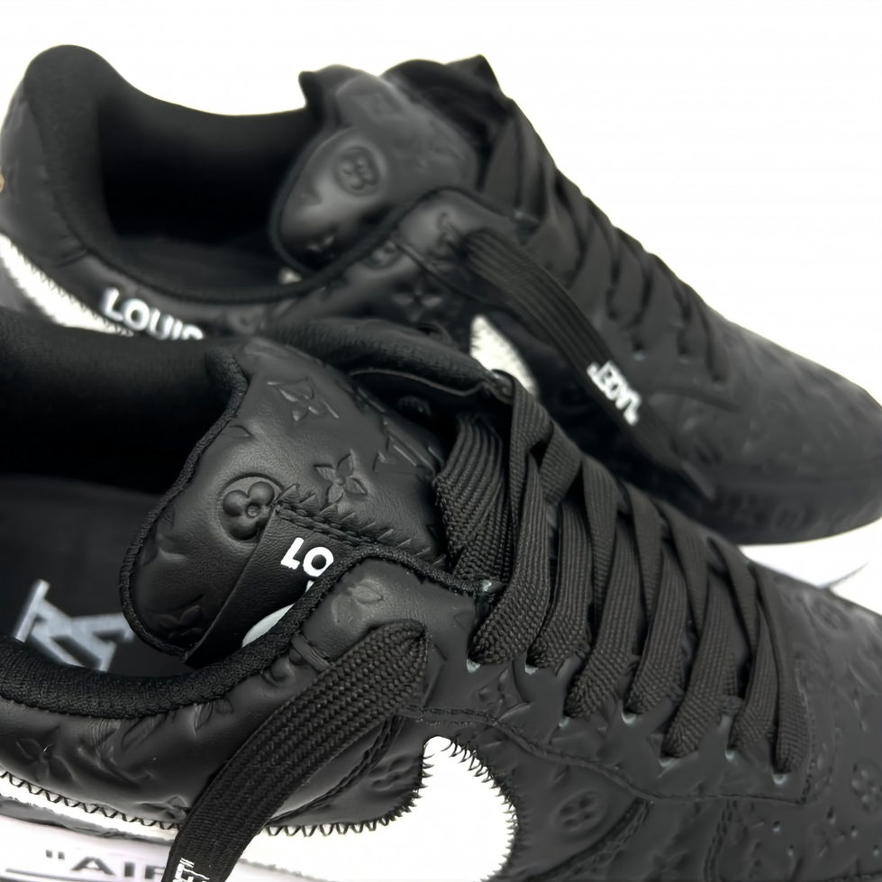 Кожаные кроссовки Louis Vuitton & Nike - это высококачественные кроссовки, созданные в результате сотрудничества между Louis Vuitton и Nike. Верх кроссовок выполнен из премиальной кожи с фирменным теснением LV, которая придает им уникальный стиль и долговечность. Цвет черный дополняется деталями в белом цвете, такими как подошва и фирменный логотип Nike Swoosh на боковой панели. Кроссовки также имеют фирменный логотип LV на заднике и подошве.