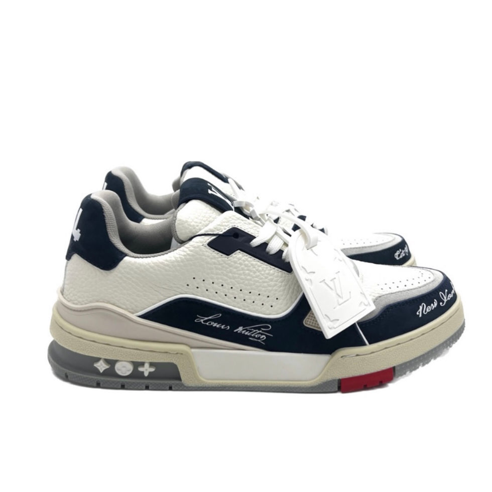 Louis Vuitton Trainer - это модель кроссовок от французского дома моды Louis Vuitton. Кроссовки имеют уникальный дизайн и высокое качество, что делает их популярными среди модных ценителей. Кроссовки Louis Vuitton Trainer в сине-белом цвете - это стильный и комфортный выбор для любителей модной обуви. Мягкая подкладка и стелька обеспечивают комфорт при ношении, а подошва из резины обеспечивает отличное сцепление с поверхностью и долговечность. Отличный выбор для повседневной носки или для создания стильного образа.